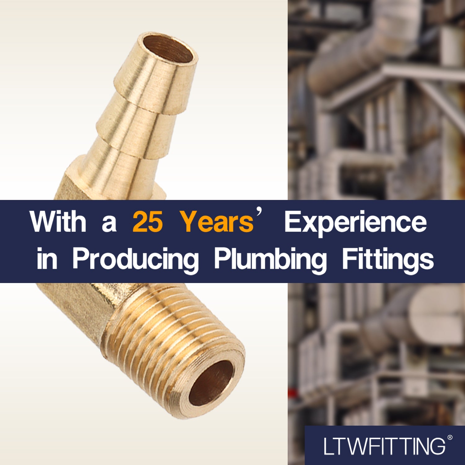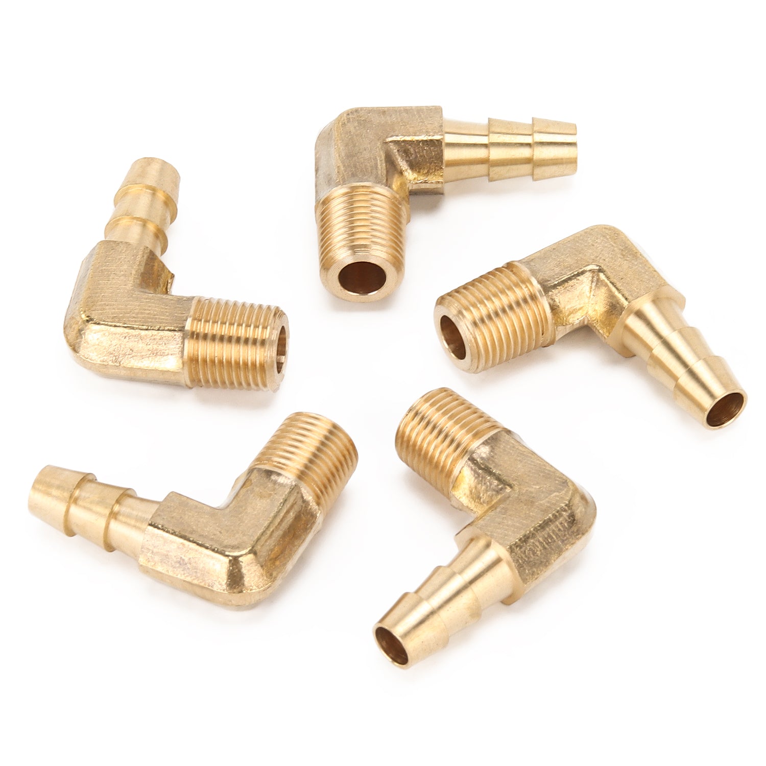 LTWFITTING 90 Degree Elbow Brass Barb Fitting 1/4 ID Hose x 1/8-Inch Male NPT Air(Pack of 5)