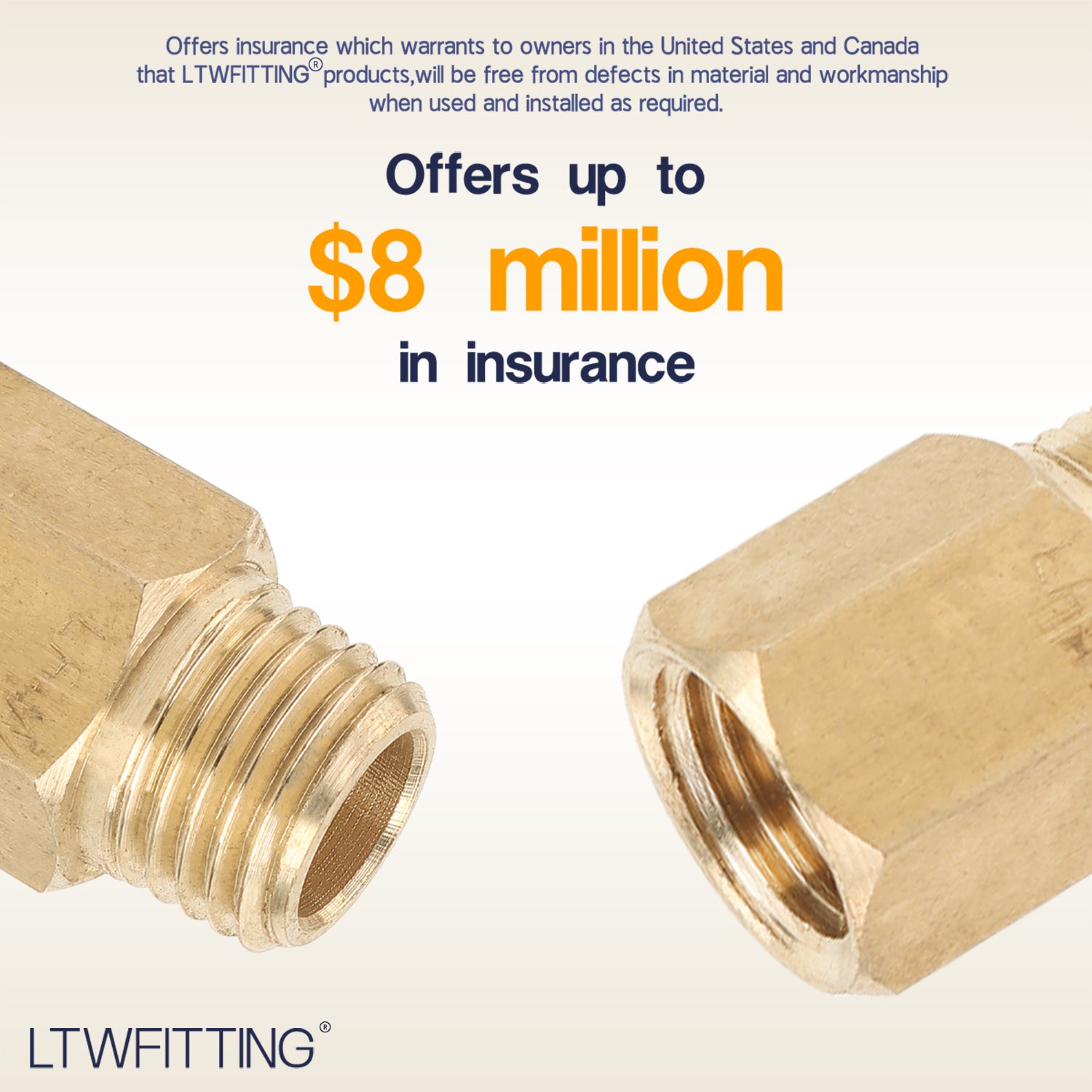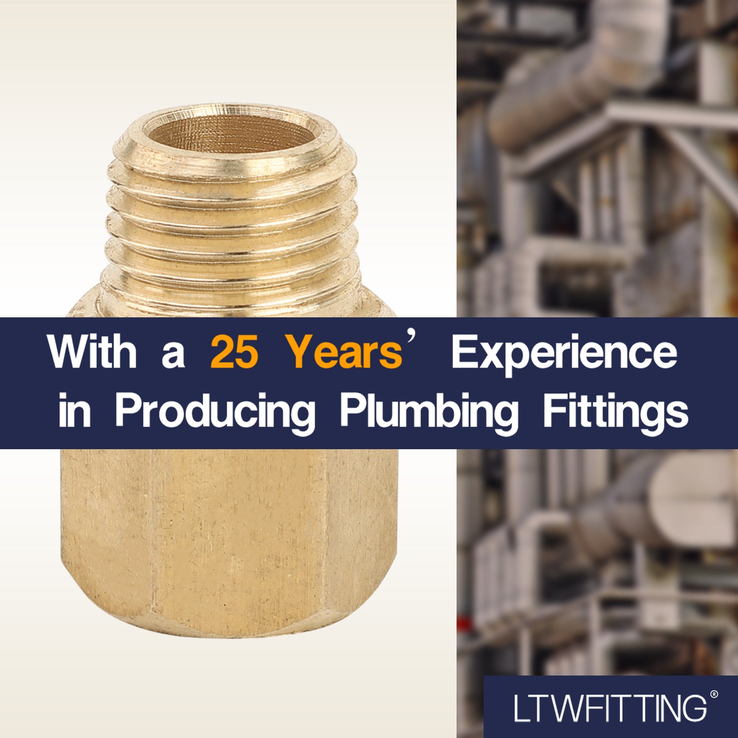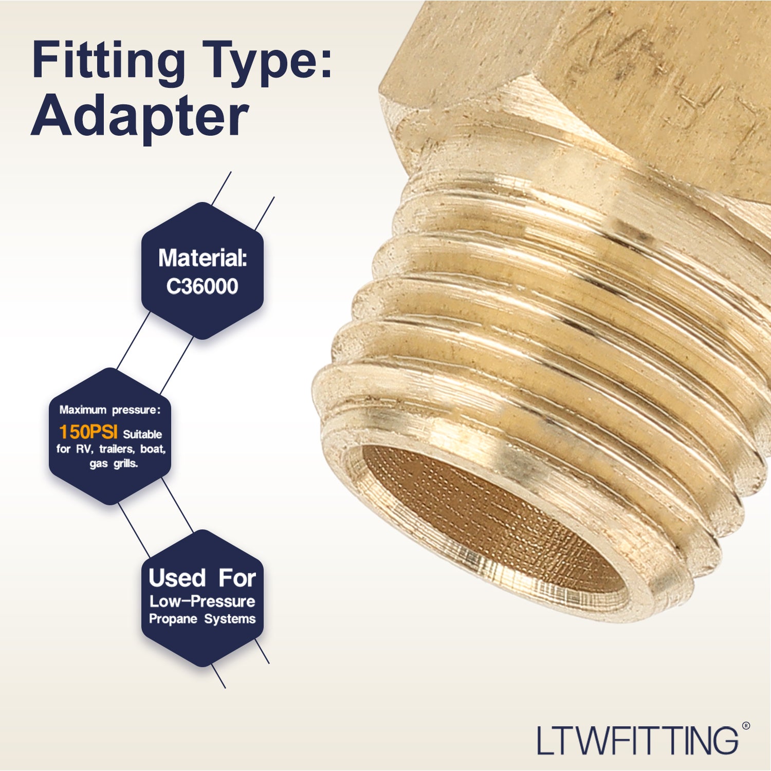 LTWFITTING Brass Pipe Fitting 1/4 Inch NPT Female x 1/4 Inch NPT Male Adapter Fuel Gas Air(Pack of 5)