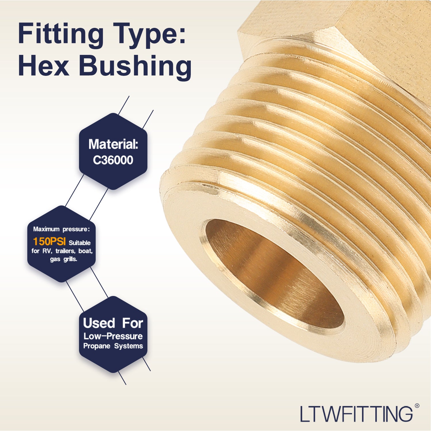 LTWFITTING Brass Pipe Hex Bushing Reducer Fittings 3/4 Inch Male x 3/8 Inch Female NPT Fuel(Pack of 5)