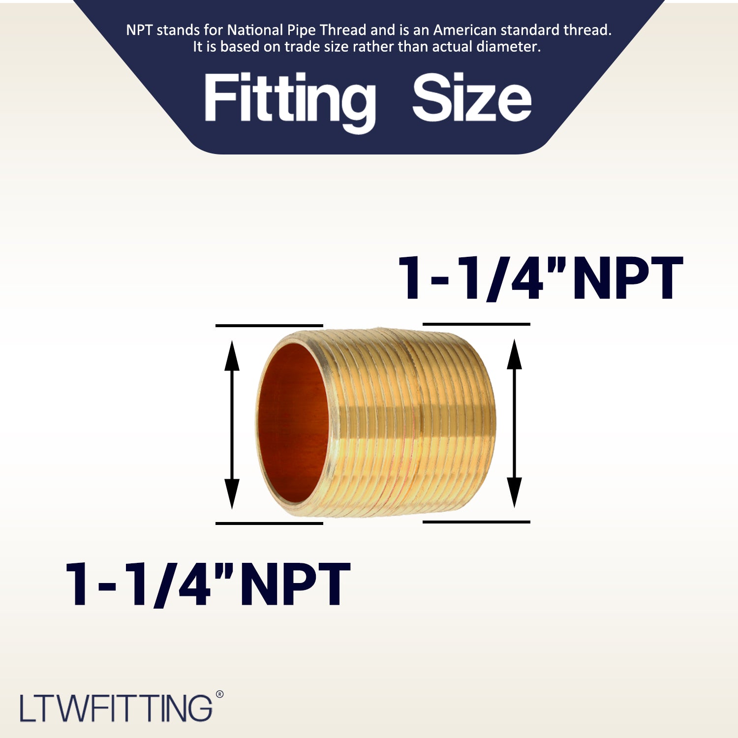 LTWFITTING Brass Pipe Close Nipple Fitting 1-1/4 Inch Male NPT(Pack of 15)