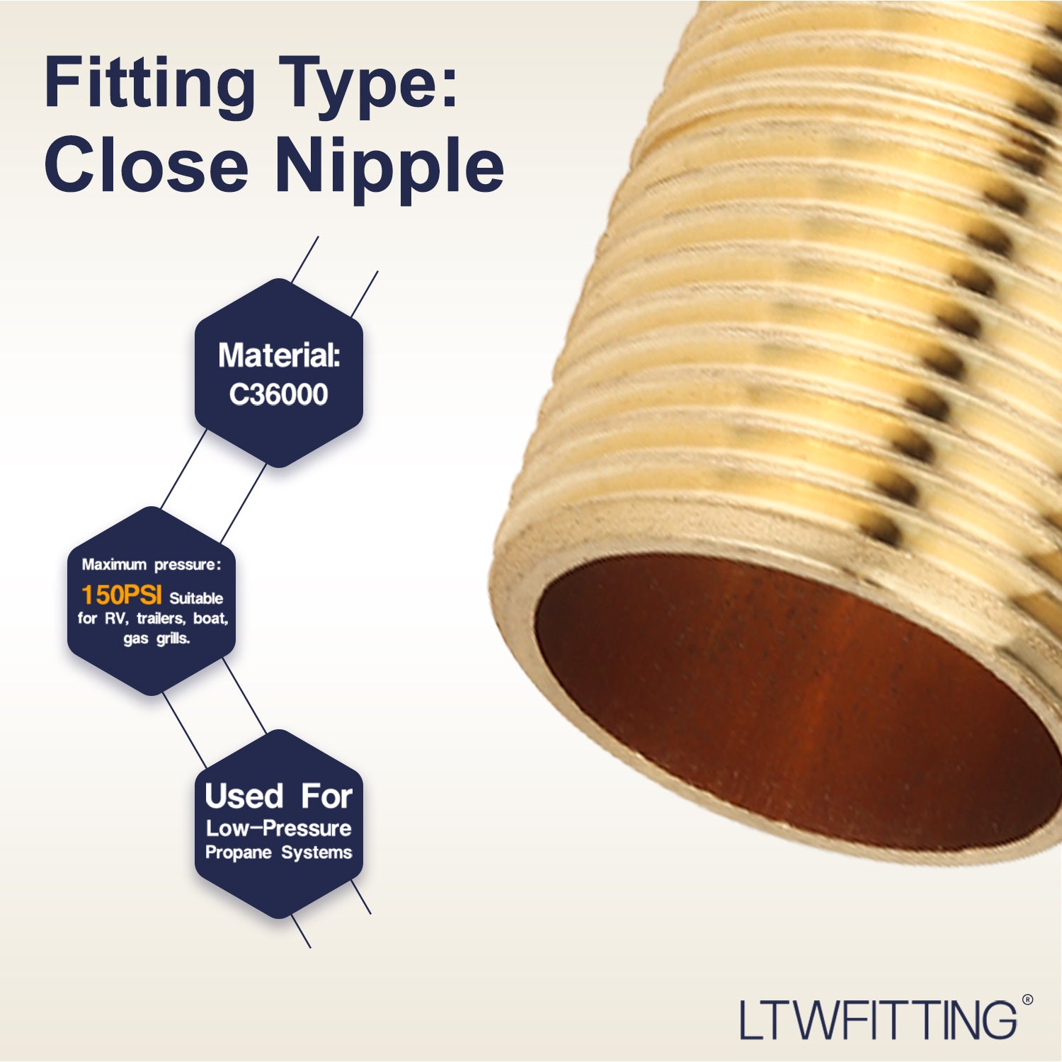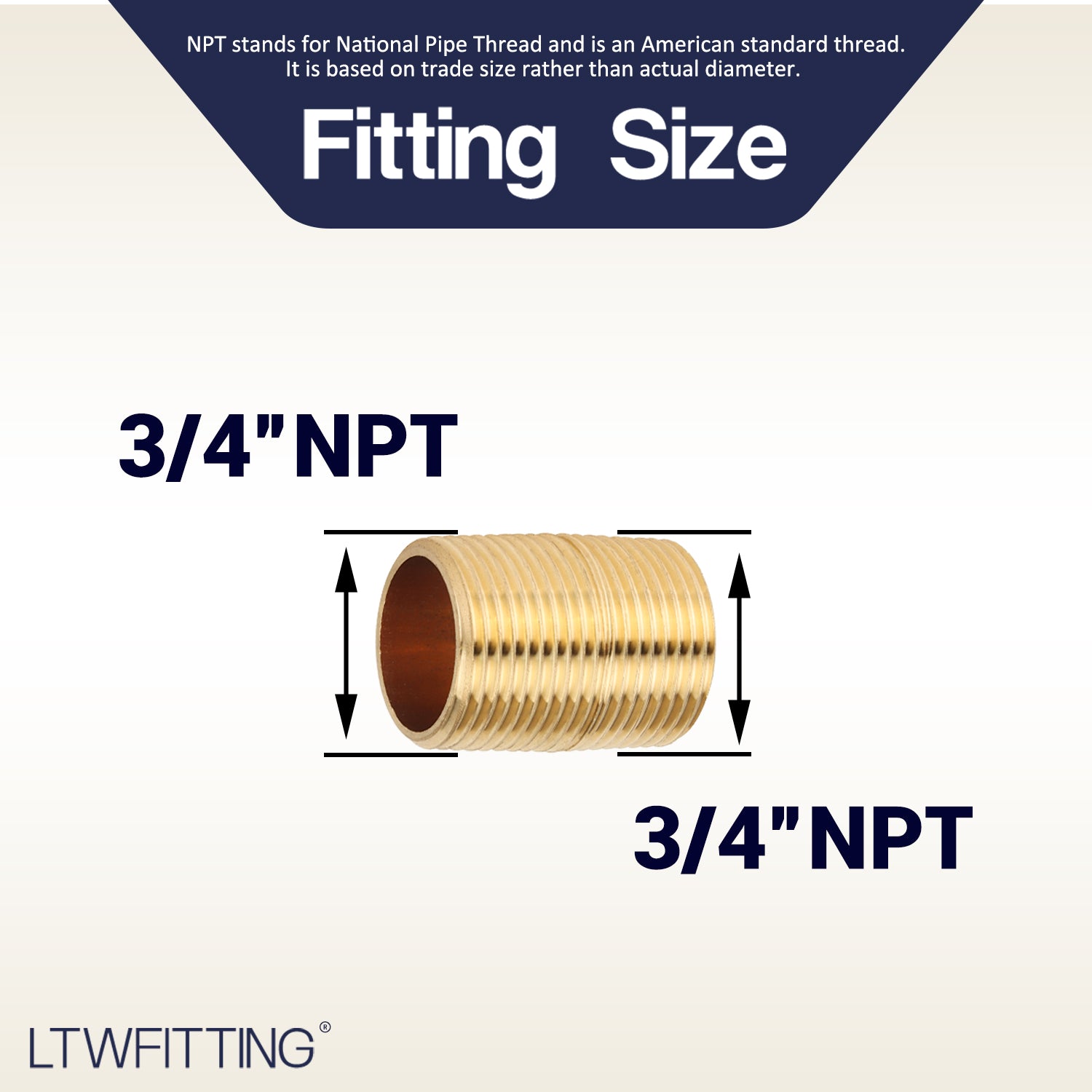 LTWFITTING Brass Pipe Close Nipples Fitting 3/4 Inch Male NPT(Pack of 25)