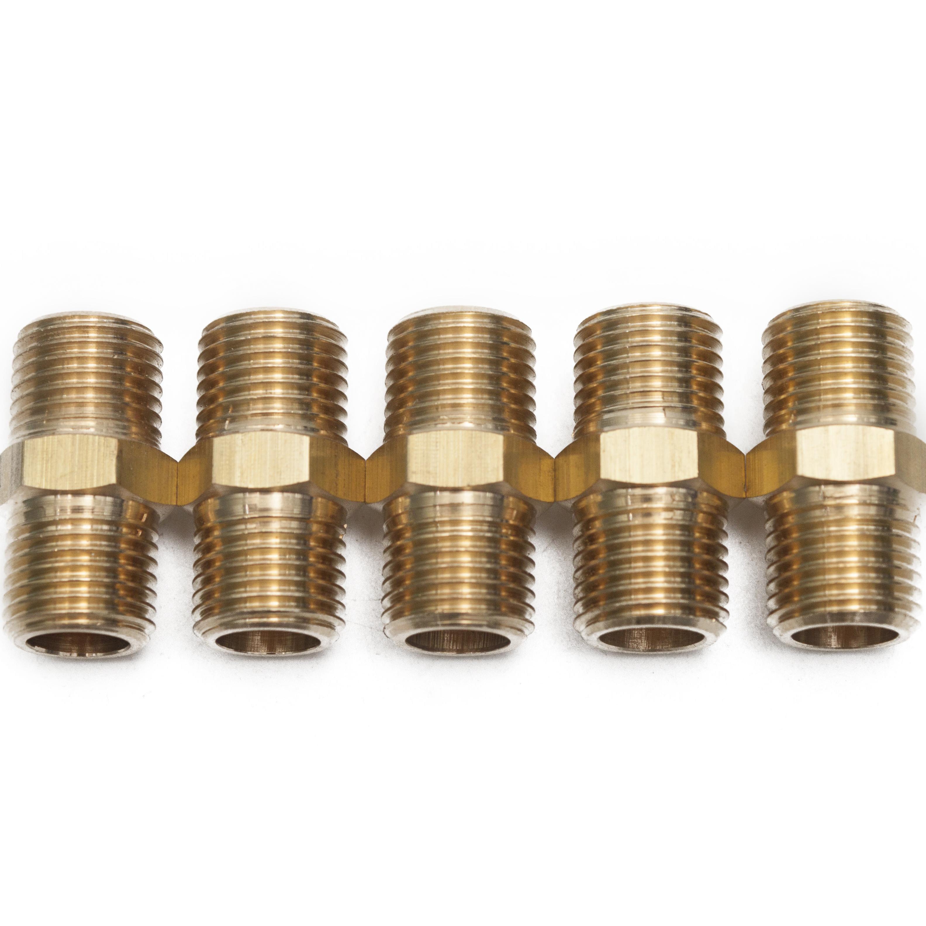 LTWFITTING Brass Pipe Hex Nipple Fitting 1/4 x 1/4 Inch Male Pipe NPT MNPT MPT Air Fuel Water(Pack of 5)