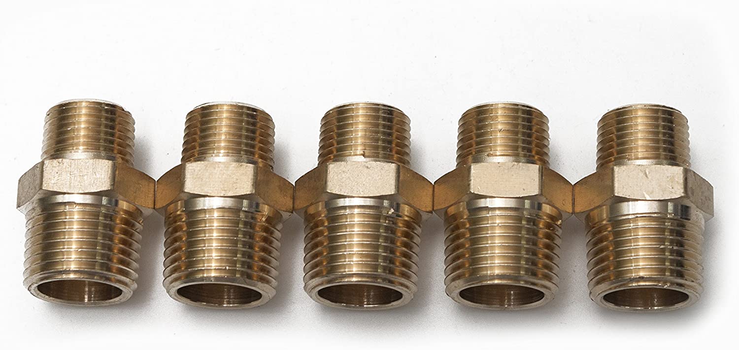 LTWFITTING Brass Pipe Hex Reducing Nipple Fitting 1/2-Inch x 3/8-Inch Male NPT(Pack of 5)