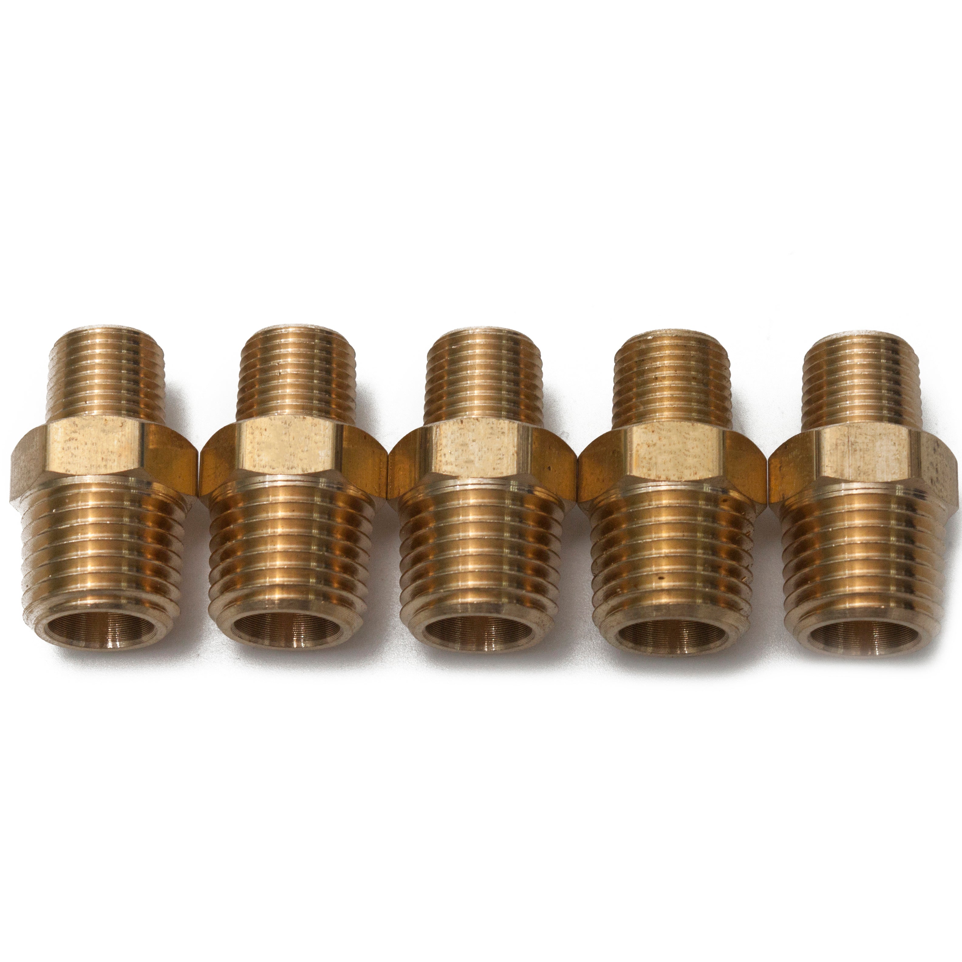 LTWFITTING Brass Pipe Hex Reducing Nipple Fitting 1/4-Inch x 1/8-Inch Male NPT(Pack of 5)