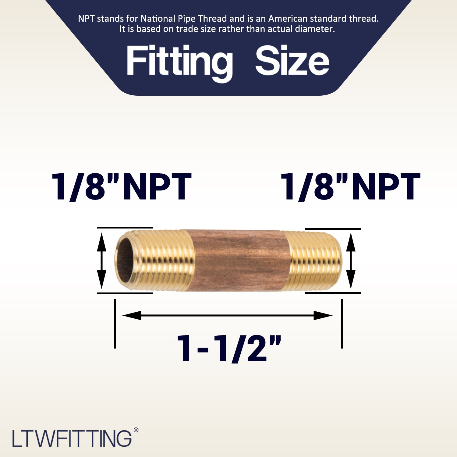 LTWFITTING Brass Pipe 1-1/2 Inch Long Nipple Fitting 1/8 Male NPT Air Water(Pack of 5)