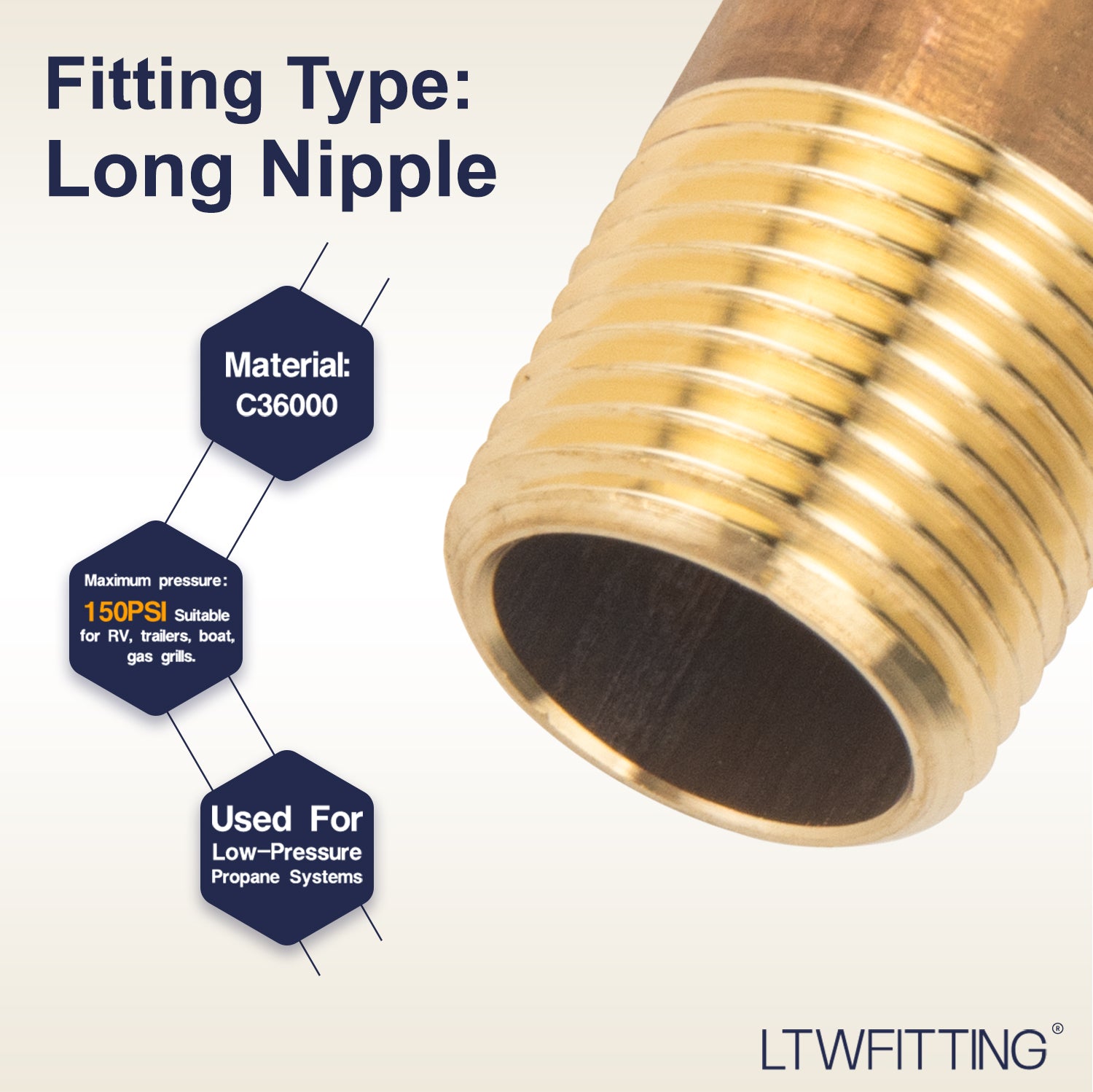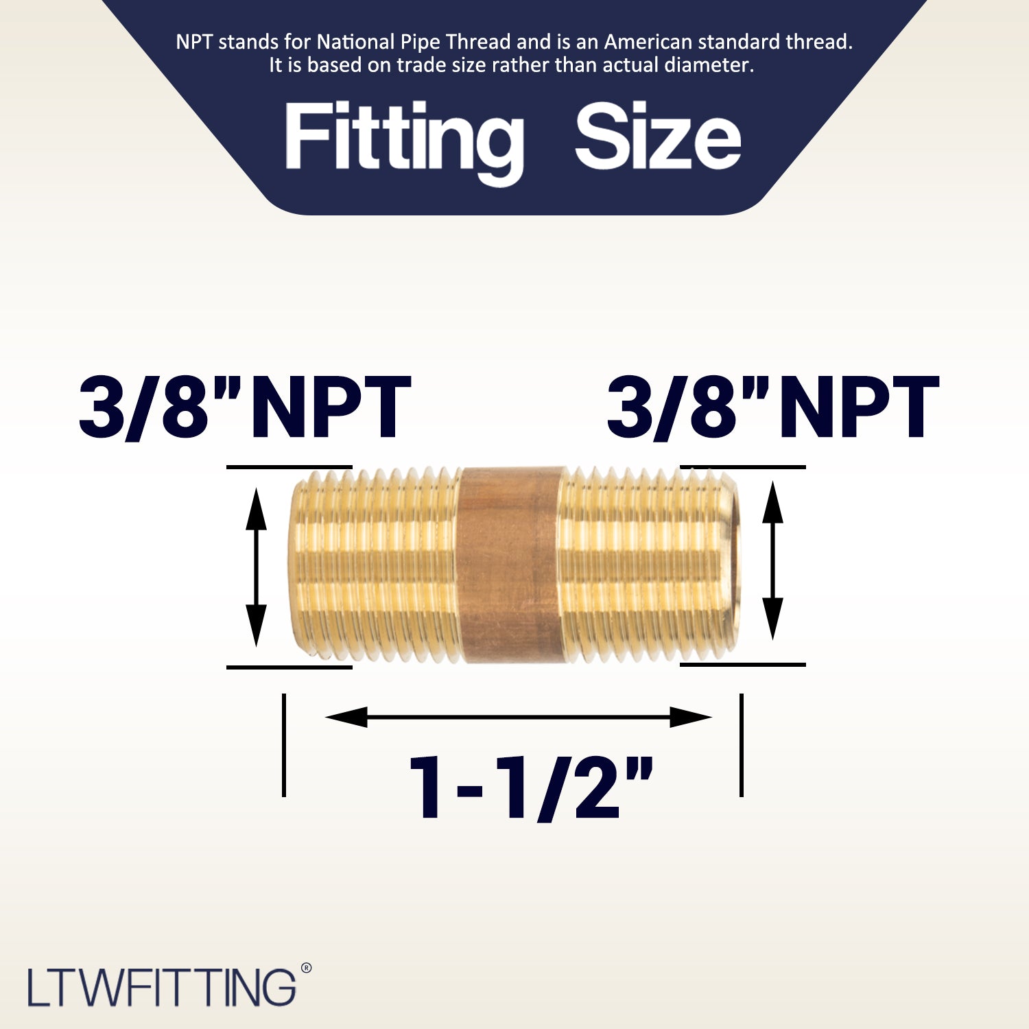 Type: Long Nipple Thread 1: 3/8 Inch NPT Male Total length: 1-1/2 Inch Materies: BRASS, Net Weight: 24g/pc Choosing products dimensions and quantities at column of size and colour seperately,price would be more favorable if choosing wholesale.