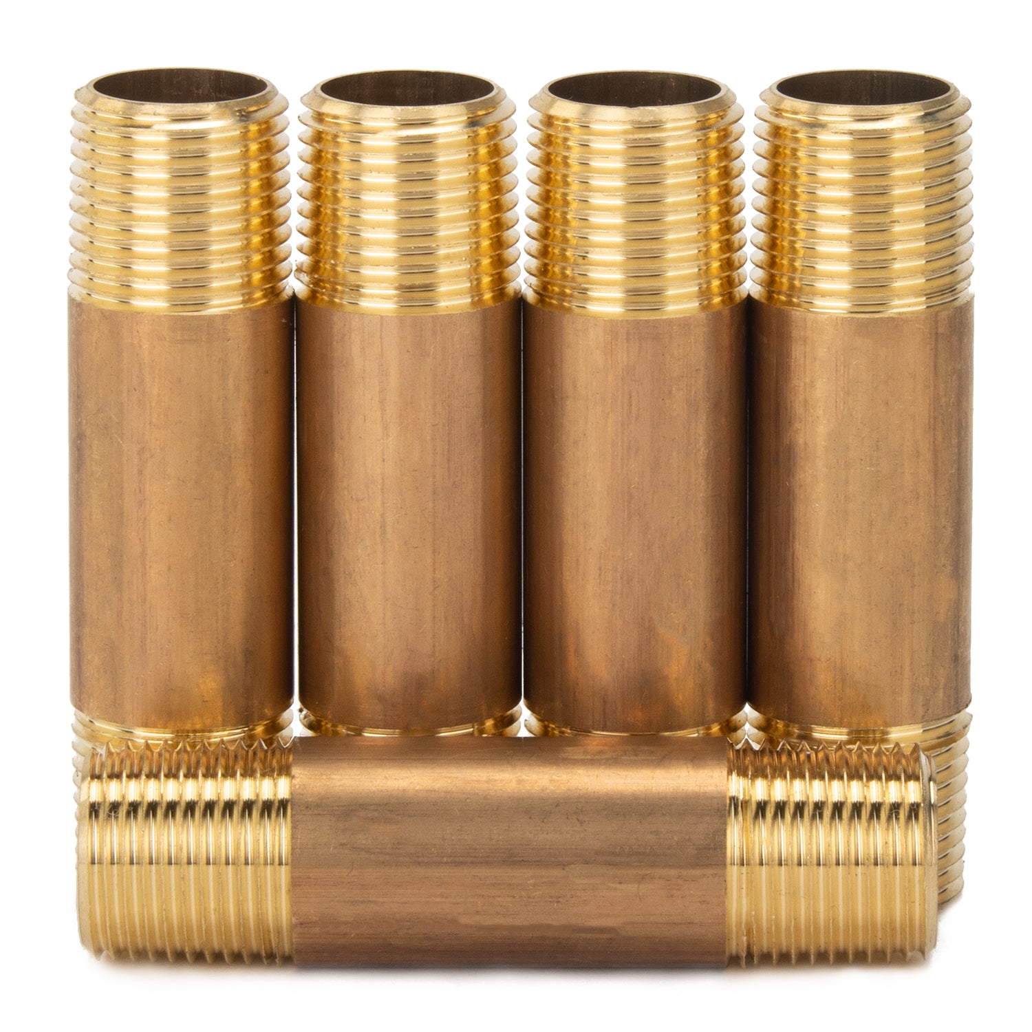 LTWFITTING Brass Pipe 2-1/2 Inch Long Nipple Fitting 3/8 Male NPT Air Water(Pack of 5)