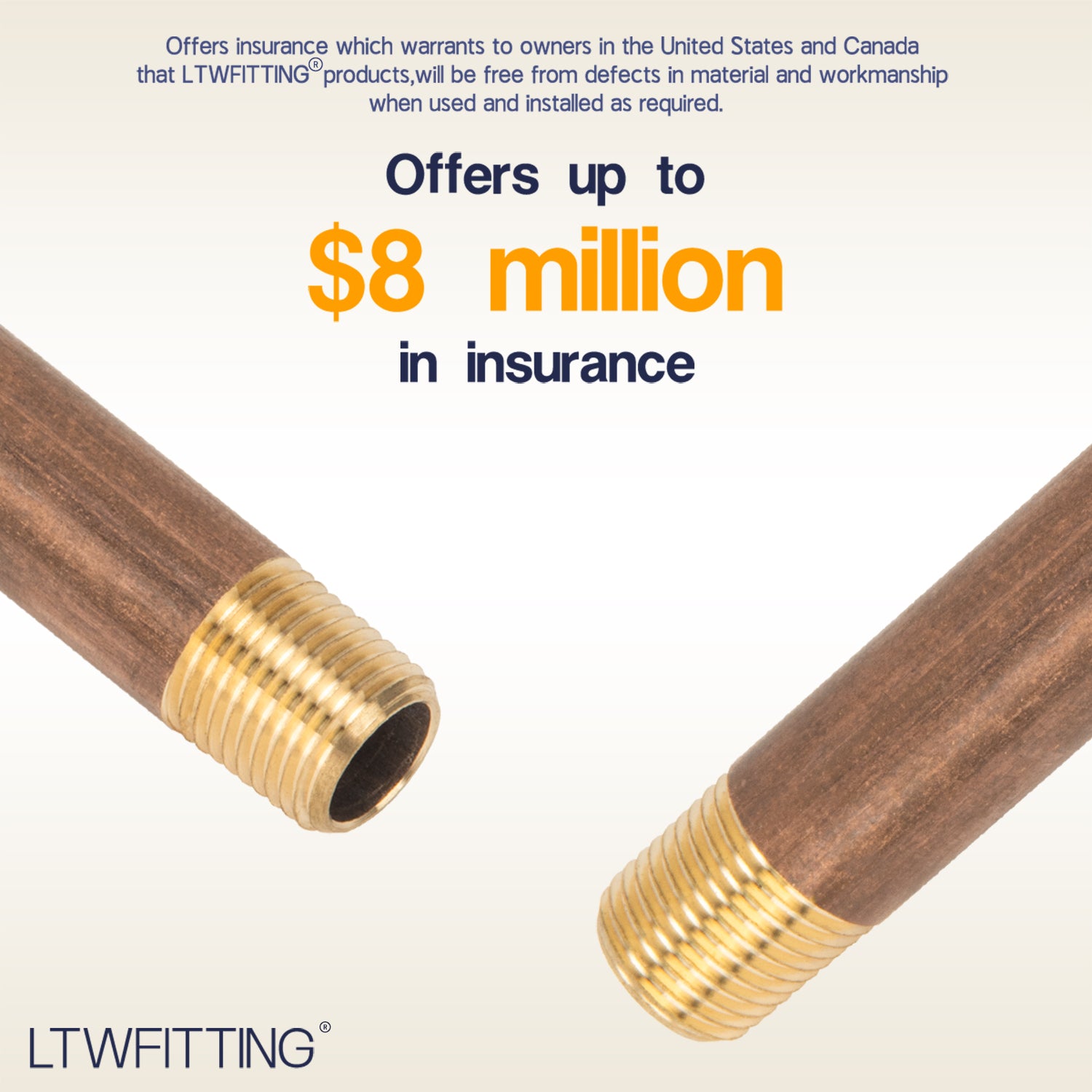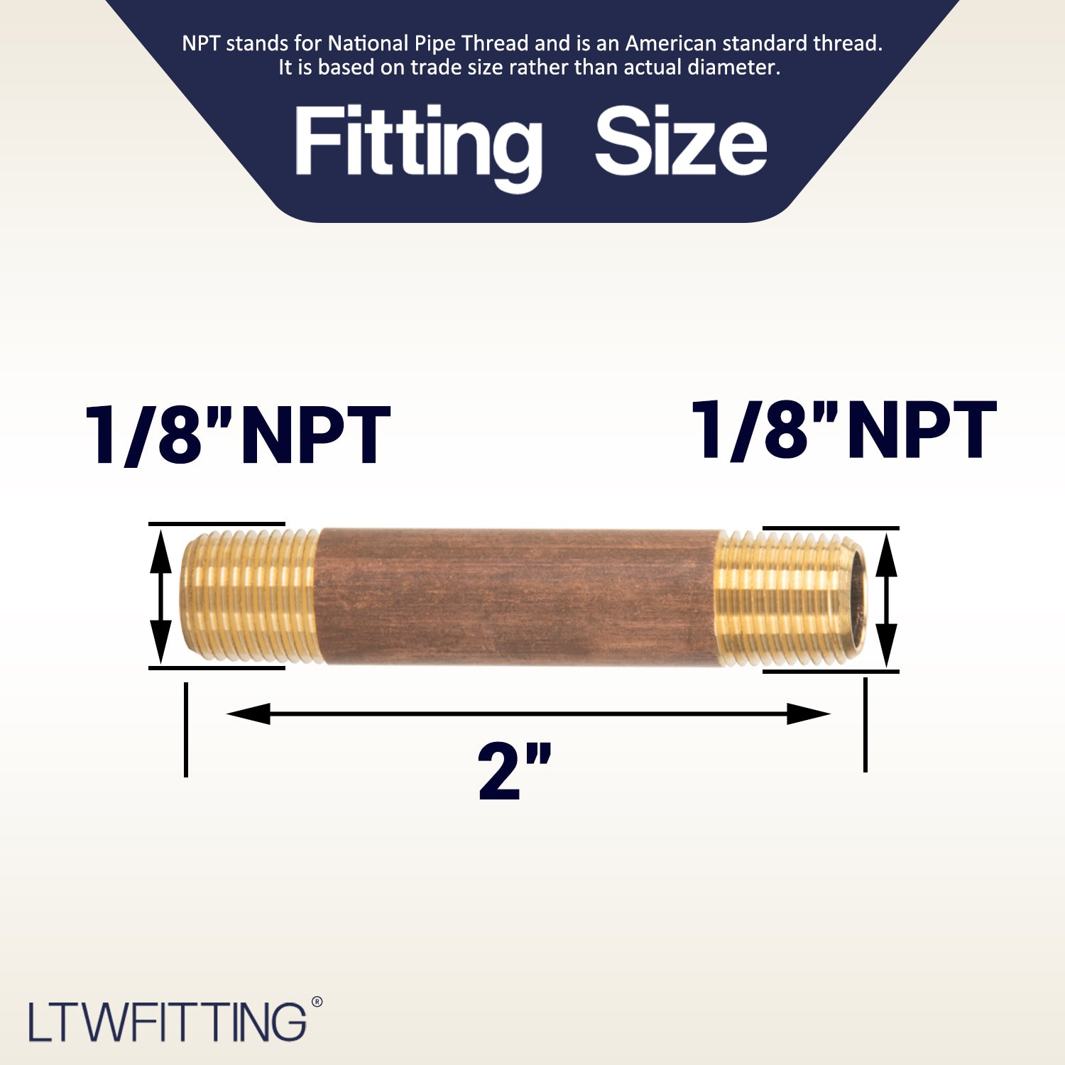 LTWFITTING Brass Pipe 2 Inch Long Nipple Fitting 1/8 Male NPT Air Water(Pack of 5)