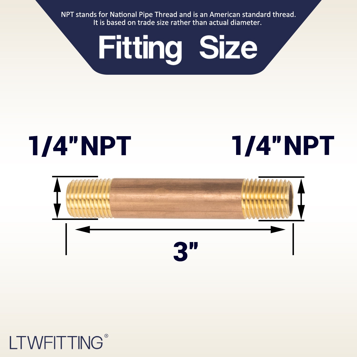 LTWFITTING Brass Pipe 3 Inch Long Nipple Fitting 1/4 Inch Male NPT Air Water(Pack of 5)