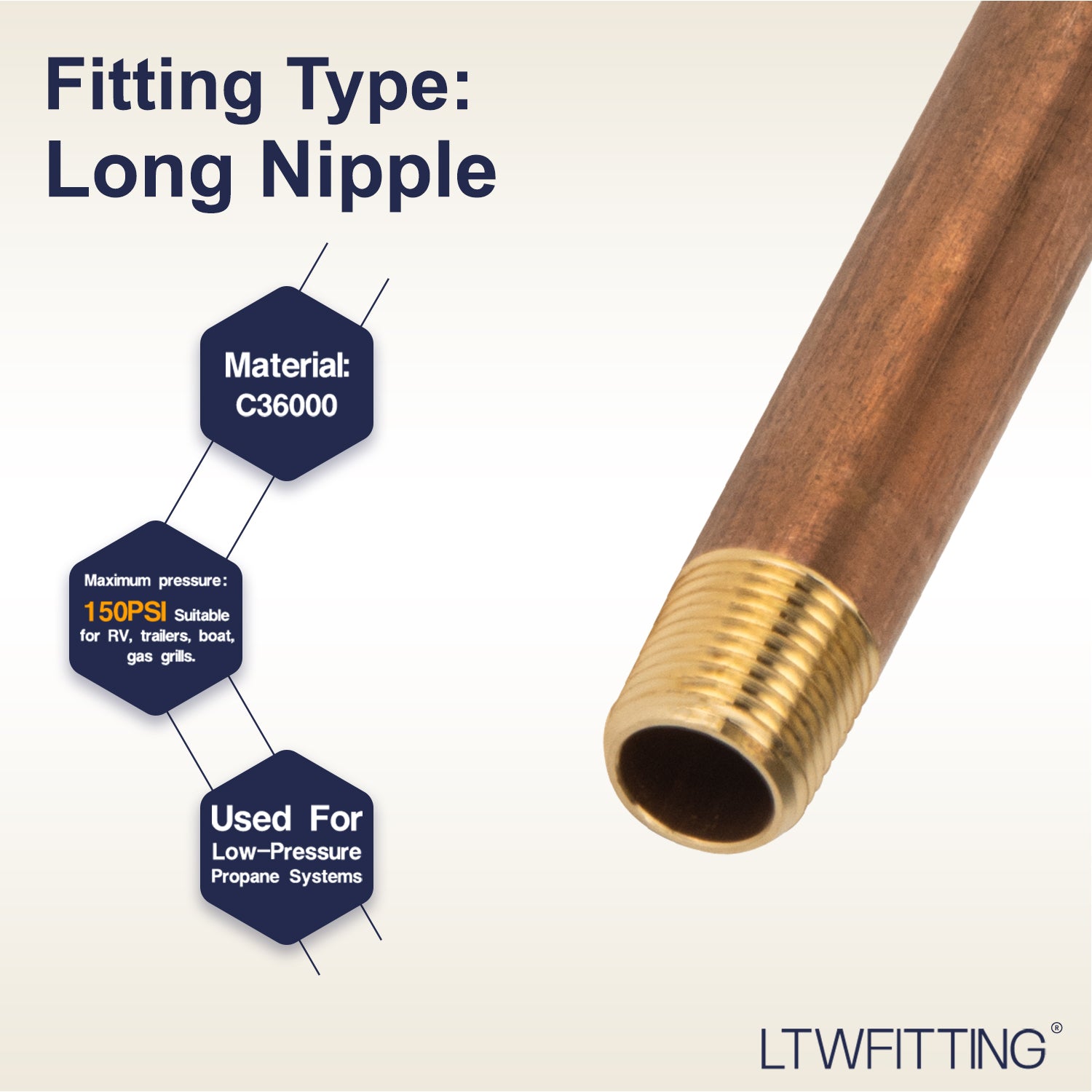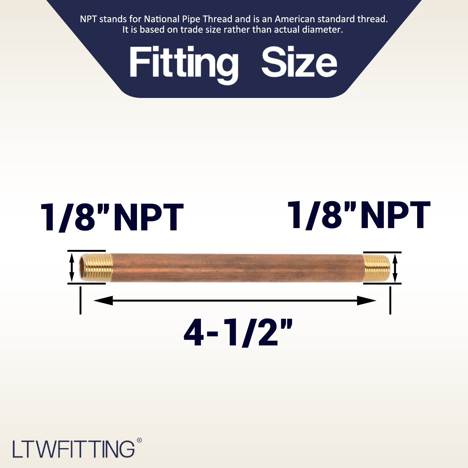 LTWFITTING Brass Pipe 4-1/2 Long Nipple Fitting 1/8 Male NPT Air Water(Pack of 25)