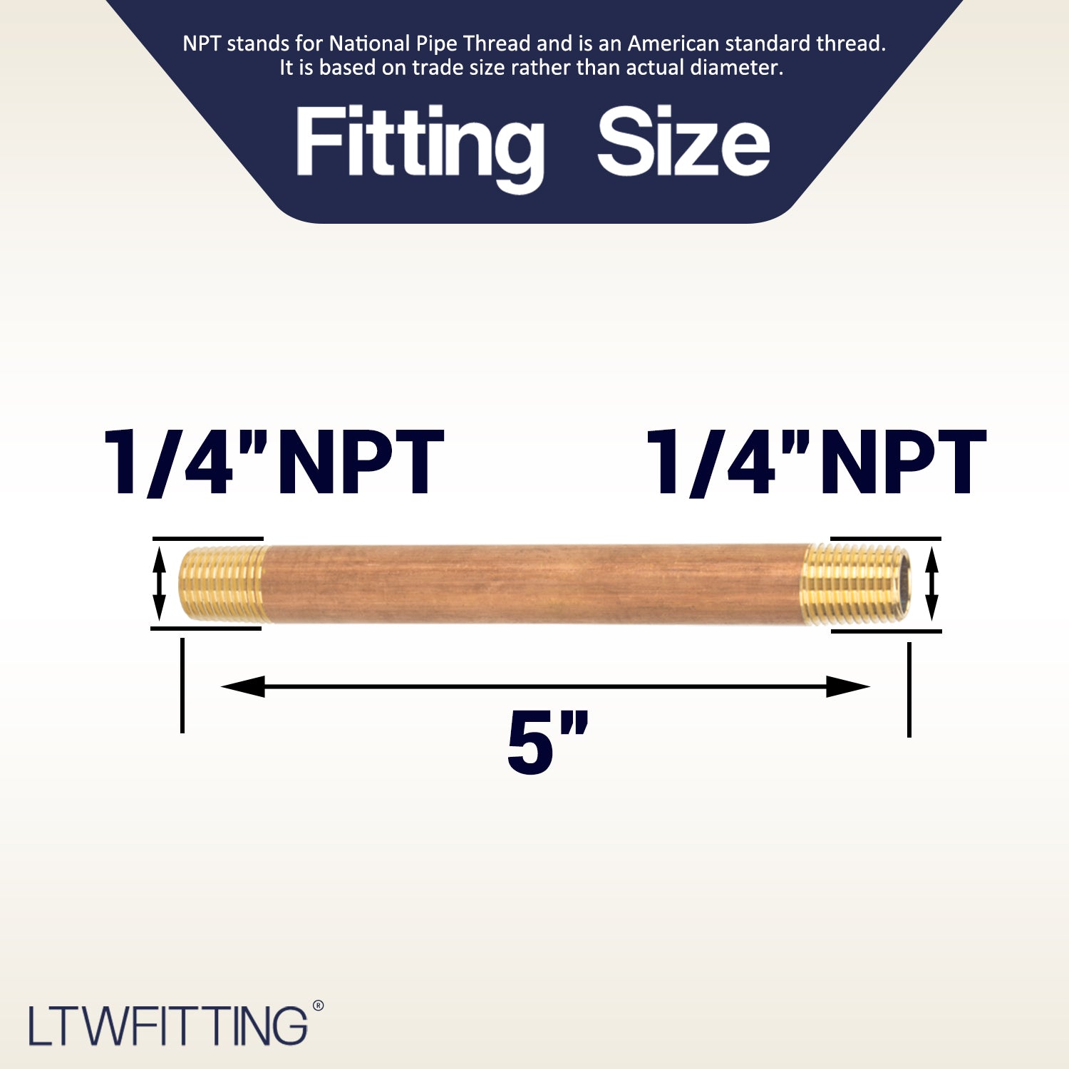 LTWFITTING Brass Pipe 5 Inch Long Nipple Fitting 1/4 Inch Male NPT Air Water(Pack of 5)