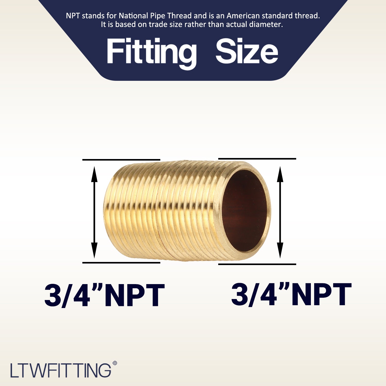 LTWFITTING Red Brass Pipe Fitting, Nipple, 3/4 Inch NPT Male X 1-1/2 Inch Length (Pack of 20)