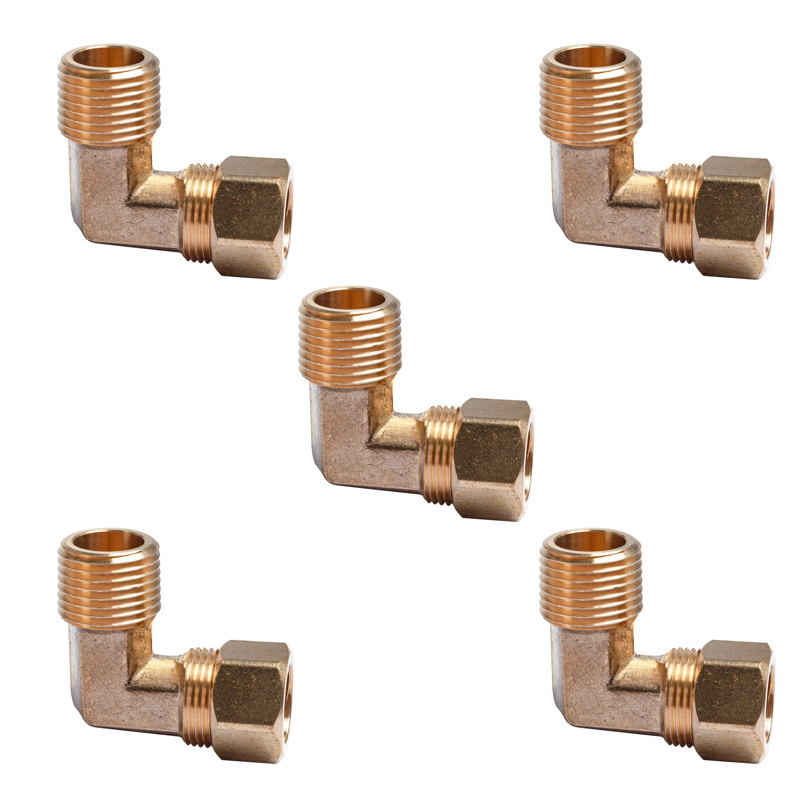 LTWFITTING 5/8-Inch OD x 1/2-Inch Male NPT 90 Degree Compression Elbow,Brass Compression Fitting(Pack of 5)