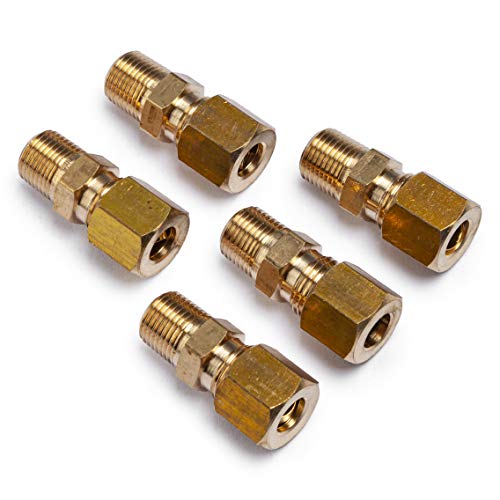 LTWFITTING Brass 1/4 OD x 1/8 Male NPT Compression Connector Fitting(Pack of 5)