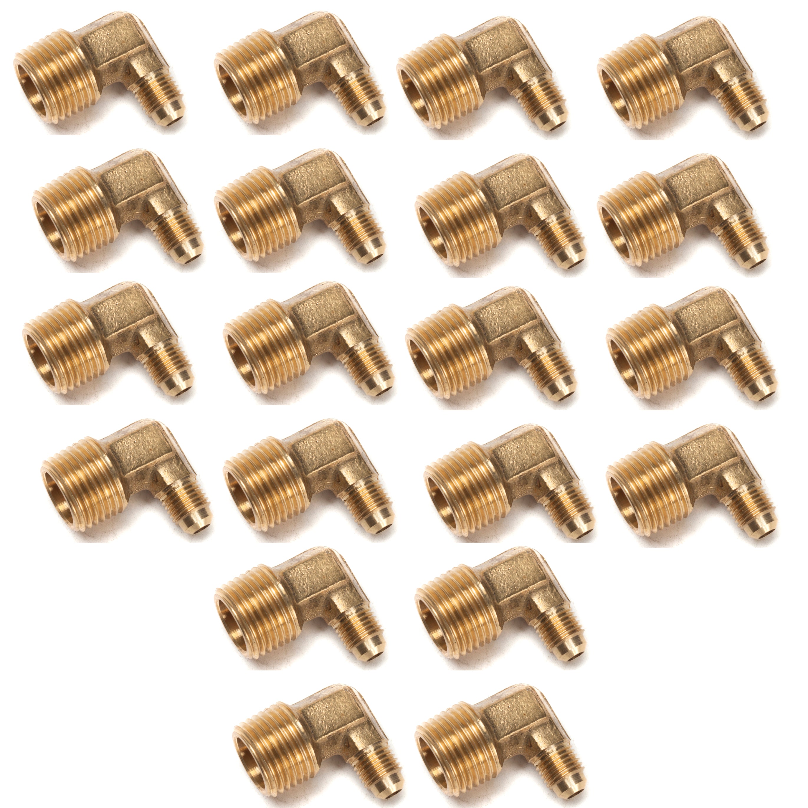 LTWFITTING Brass Flare 1/4 Inch OD x 1/2 Inch Male NPT 90 Degree Elbow Tube Fitting (Pack of 20)