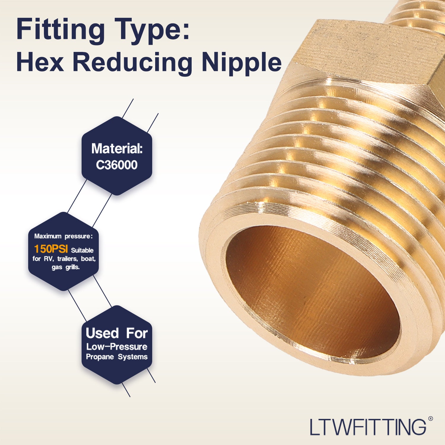 LTWFITTING Brass Hex Reducing Nipple Fitting – 3/4"" BSPP x 3/8"" NPT