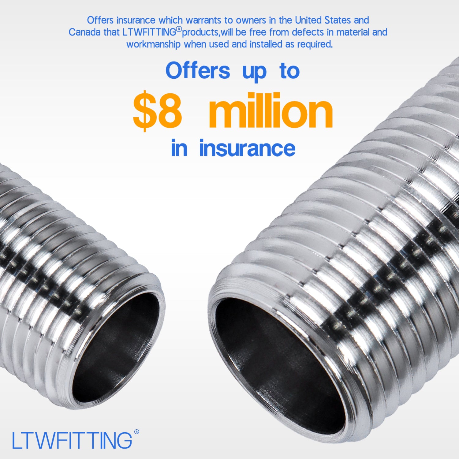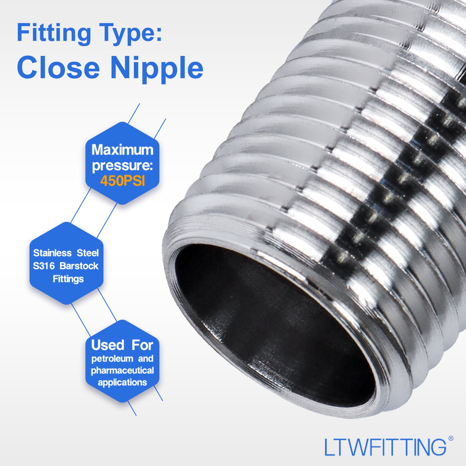 LTWFITTING Stainless Steel 316 Pipe 1-1/2 Inch Close Nipple Fitting 1/2 Inch Male NPT (Pack of 25)