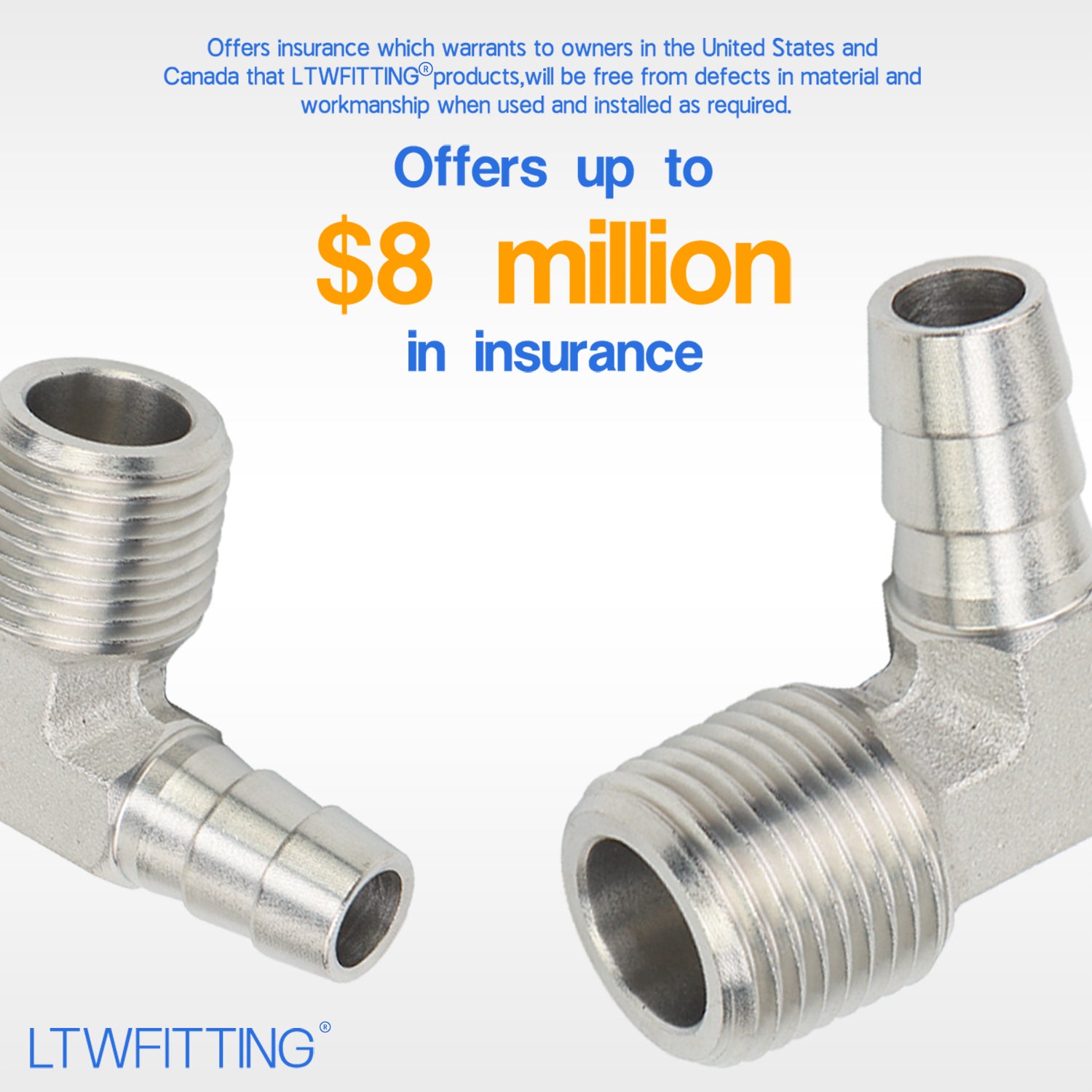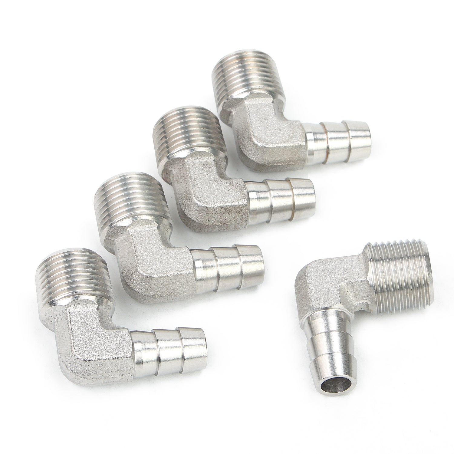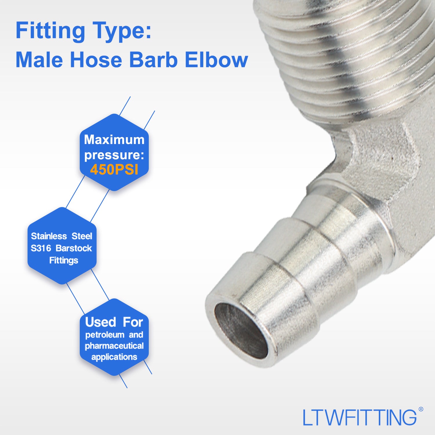 LTWFITTING 90 Degree Elbow Stainless Steel 316 Barb Fitting 3/8 Inch ID Hose x 3/8 Inch Male NPT Air Gas (Pack of 5)