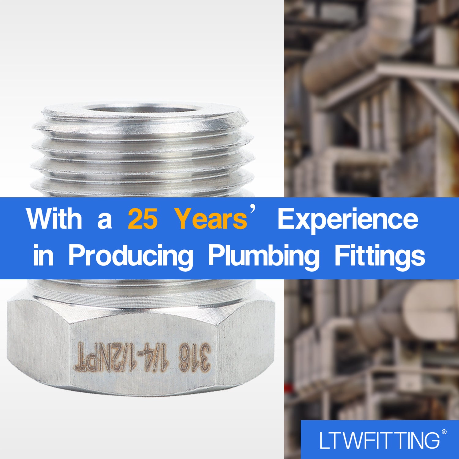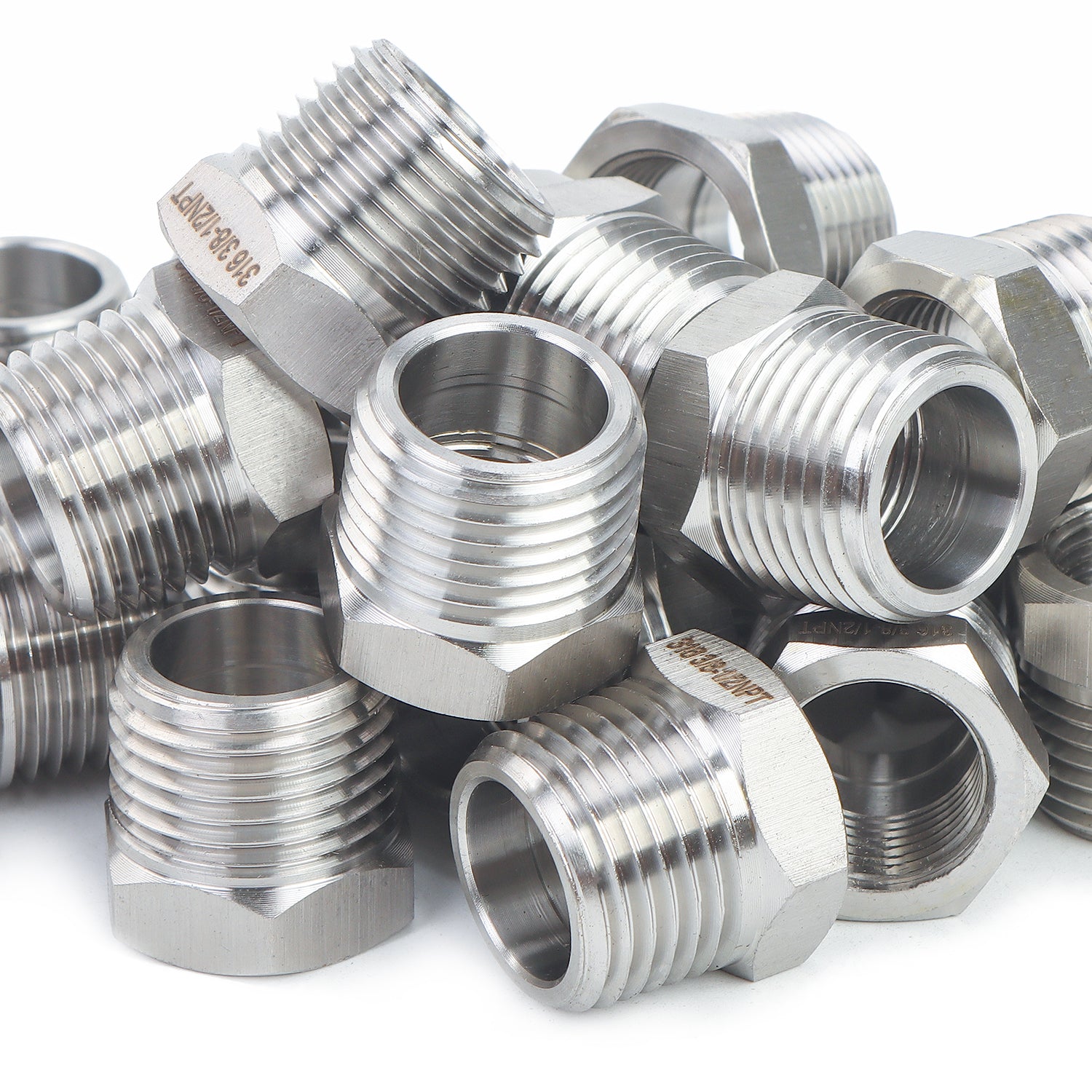 LTWFITTING Bar Production Stainless Steel 316 Pipe Hex Bushing Reducer Fittings 1/2 Inch Male x 3/8 Inch Female NPT Fuel Water Boat (Pack of 400)