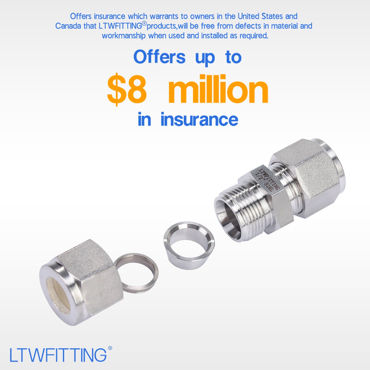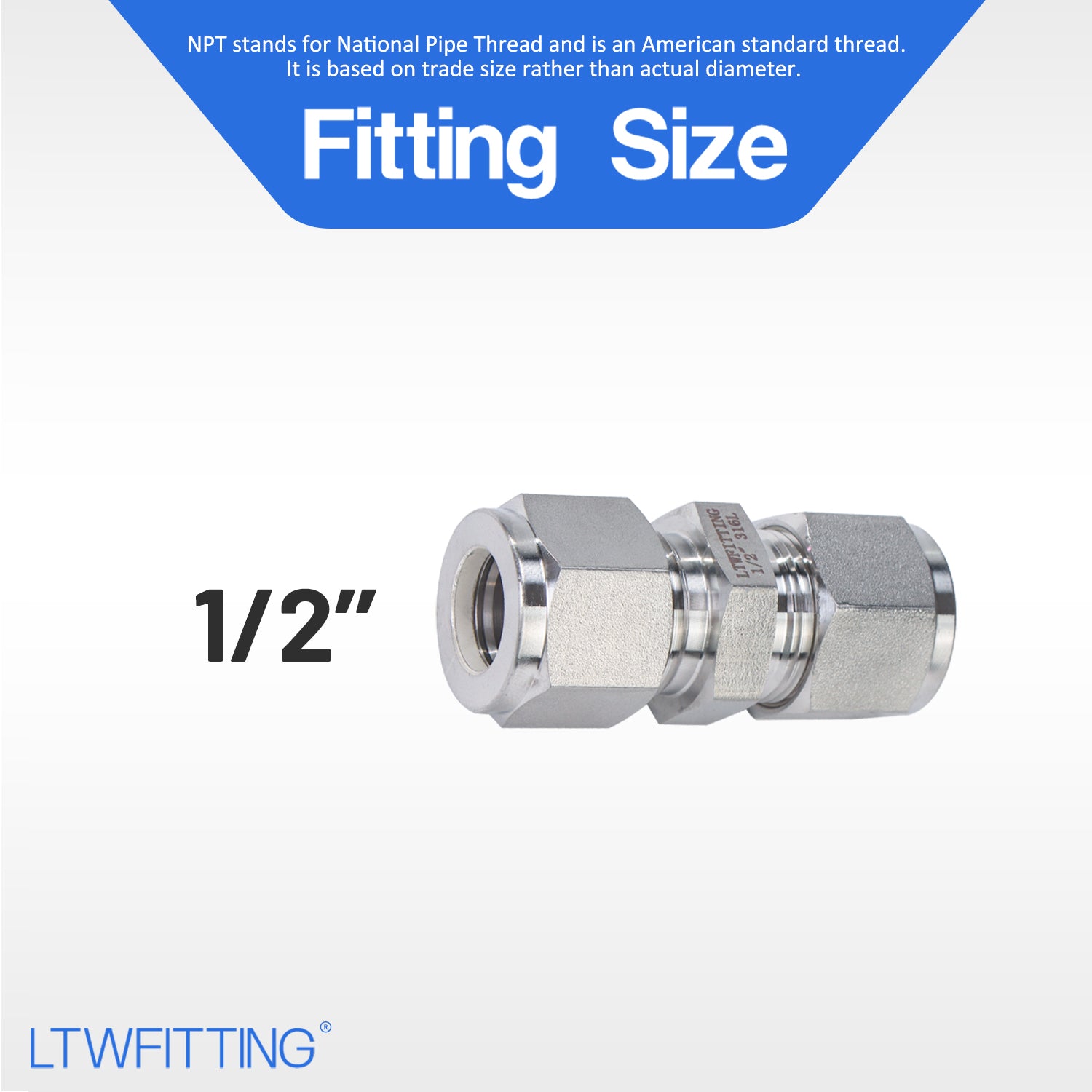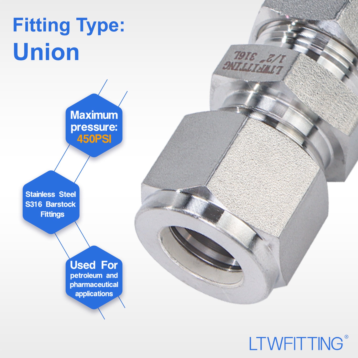 LTWFITTING 1/2-Inch OD Compression Union,Stainless Steel 316 Compression Fitting (Pack of 5)