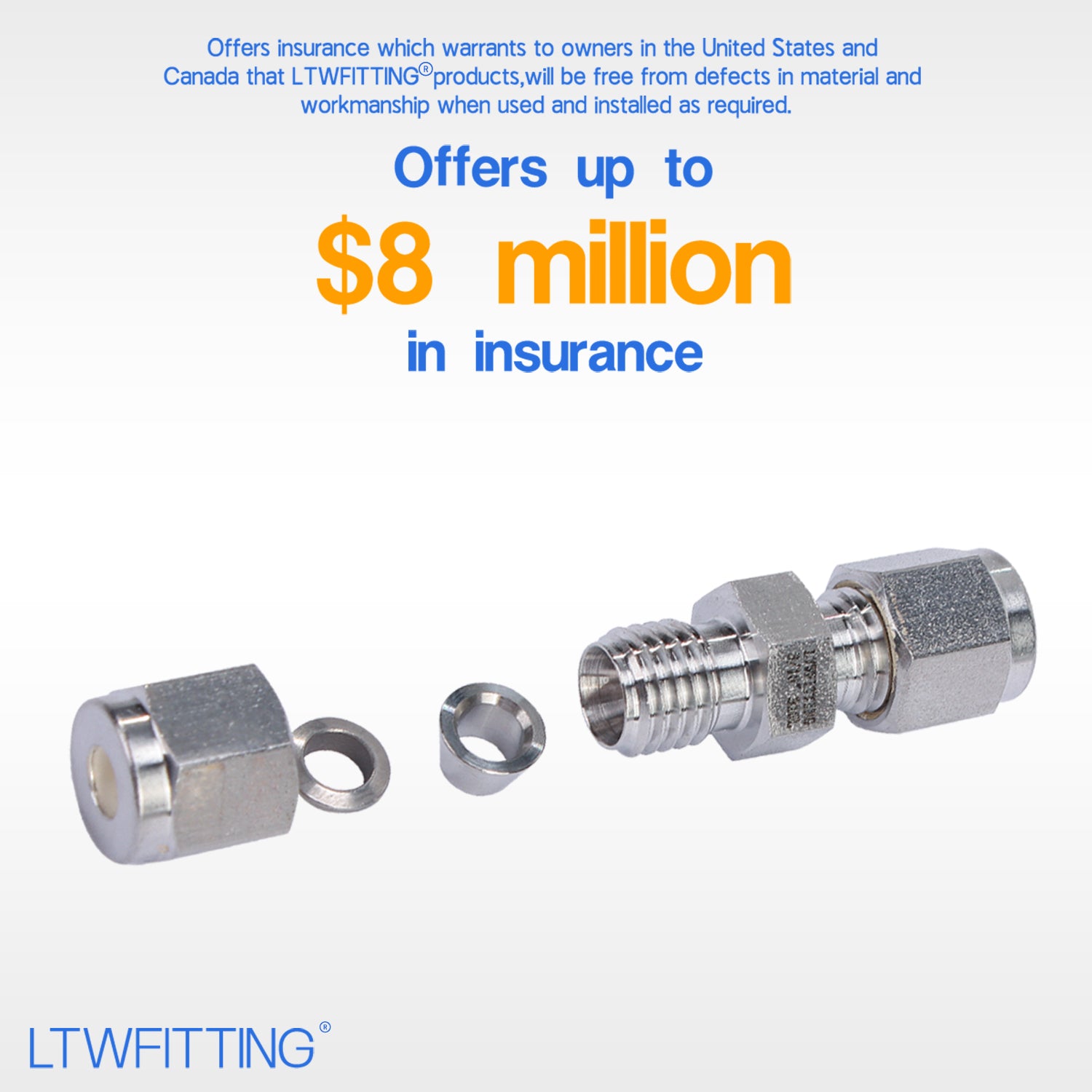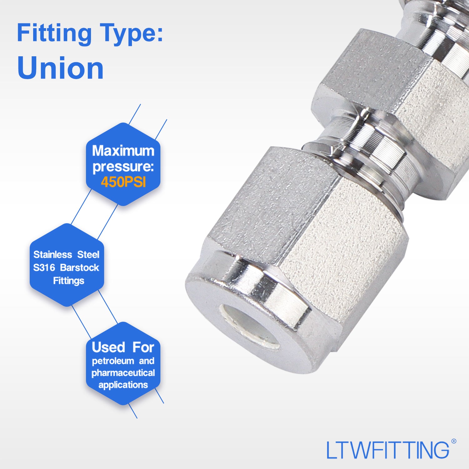 LTWFITTING 3/16-Inch OD Compression Union,Stainless Steel 316 Compression Fitting (Pack of 250)